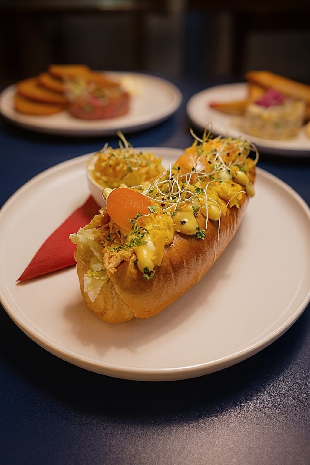 Chilli cheese Hot Dog, steakové hranolky, masový párek 110g, čedarová omáčka, marinovaná zelenina, chilli Alergeny: 1a, 3 ,7 |